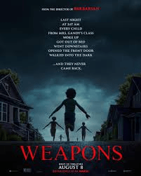 Weapons takes on an interesting twist as the story changes with every key character involved. This film is more of a physiological horror with haunting imagery and creepy vibes throughout.